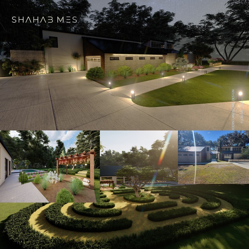 The project presents a landscape design for a modern house in Florida, integrating nature with contemporary outdoor living. Expansive grass lawns and thoughtfully arranged trees create a natural, refreshing environment that frames the residence. A sleek canopy provides shaded comfort and architectural balance, while a modern pool serves as the centerpiece for relaxation and leisure. The composition emphasizes open views, smooth transitions between indoor and outdoor spaces, and sustainable planting choices suited to the Florida climate. The overall design blends elegance, functionality, and natural beauty, enhancing both lifestyle and visual harmony.