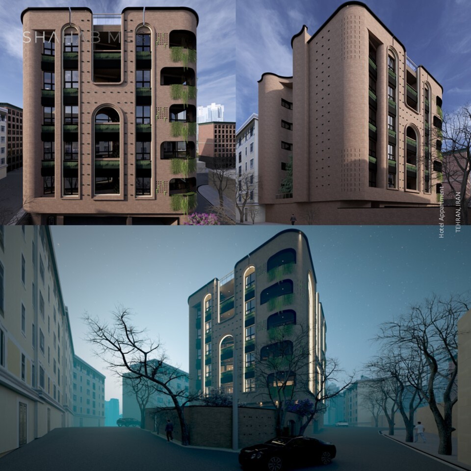 The project highlights the design of a five-story hotel apartment in Tehran, blending modern functionality with traditional Iranian architectural elegance. The façade incorporates rhythmic geometry, arches, and decorative patterns inspired by Persian heritage, balanced with contemporary materials and clean structural lines. Spacious balconies and refined detailing create harmony between tradition and modernity. Interiors emphasize comfort and efficiency, offering both residential warmth and hotel-level hospitality. Natural light, symmetrical proportions, and cultural motifs enhance the sense of identity and belonging. The overall design achieves a sophisticated fusion of Iranian tradition and modern urban living, presenting a timeless landmark in Tehran’s skyline.