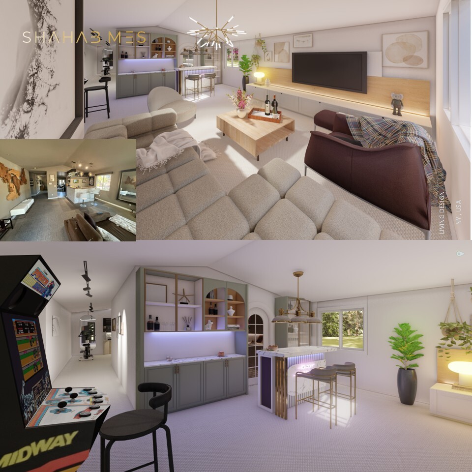The project showcases the interior renovation of a small house in Arizona, designed to create a cozy yet vibrant lifestyle space. The living area integrates a bar table with modern finishes, blending social functionality with intimate comfort. An entertainment arcade in the lobby adds a playful and dynamic atmosphere, enhancing leisure within the compact layout. Warm materials, soft lighting, and thoughtful spatial planning balance coziness with modern style, while natural desert-inspired tones root the design in its Arizona setting. The overall transformation emphasizes comfort, entertainment, and a welcoming character, redefining small-house living with personality and elegance.
