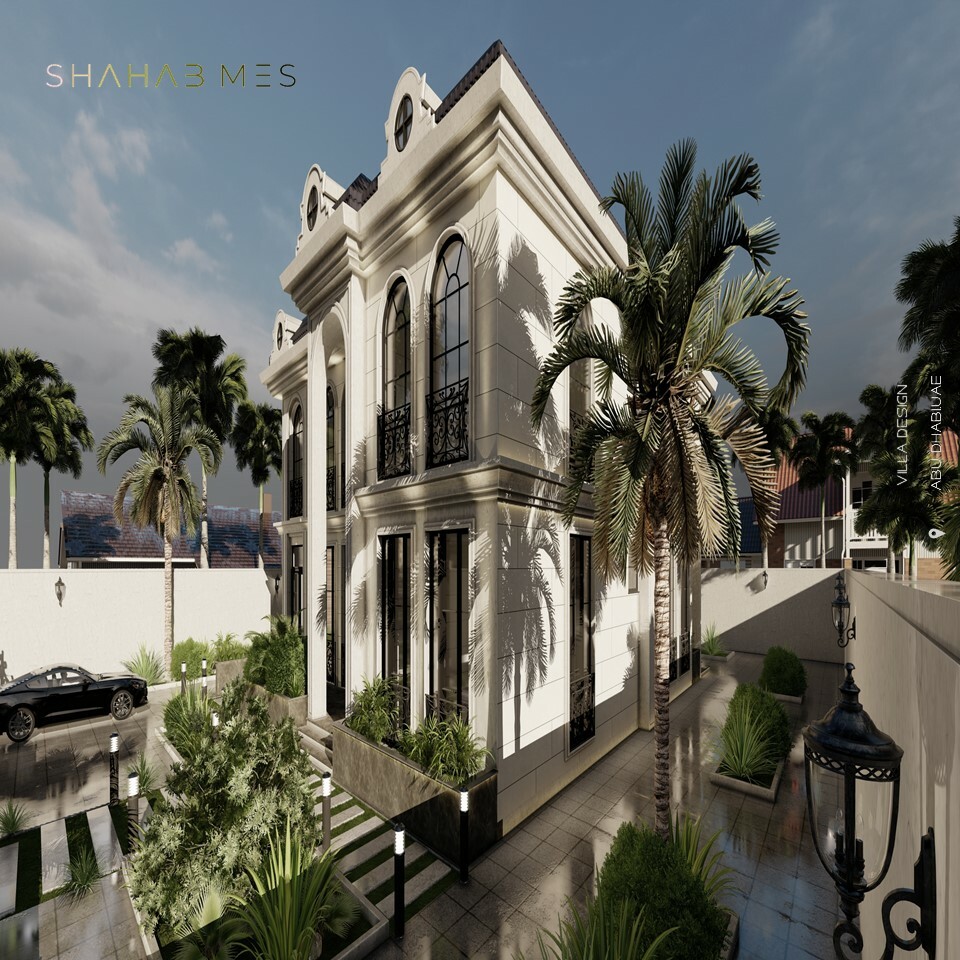 The project involves designing a three-story Classic French villa in Abu Dhabi, featuring timeless architectural elements and a luxurious interior layout. It includes beautifully landscaped gardens with a swimming pool and outdoor seating areas for relaxation. The design emphasizes sustainability while providing a sophisticated living environment.